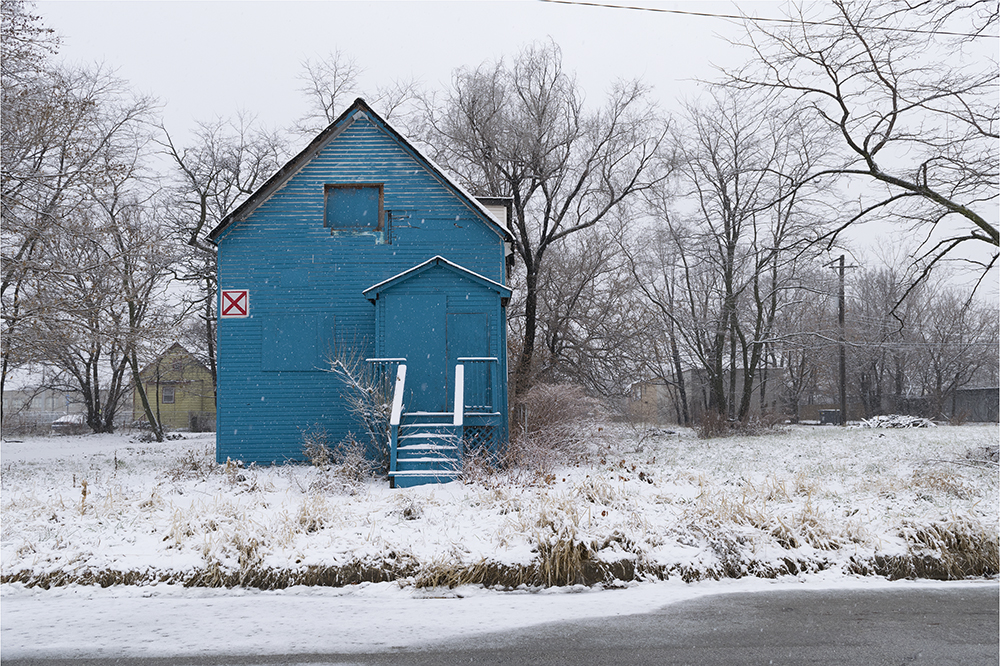 Williams renders this heritage visible in the angst of the lonely, chromatic houses of her Color(ed) Theory series, which forms a major part of the Chicago Works exhibition. Knowing the urban planning failures, lack of economic equity, and lack of social capital that gave rise to the houses’ impending demolition, we can read Color(ed) Theory as a bold response to the exploitation of the black home, which is, in turn, a metaphor for the exploitation of the black female. That the first works in Color(ed) Theory are painted to match and then titled after black beauty products is notable. Williams describes the process for finding the colors of Englewood identity as a casual brainstorm with her friends, in which she threw out colors and they responded “yes” or “no.”7 The colors register immediately in the neighborhood, where a discarded package of Newports might sit next to a crumbling Newport-green home, slated for demolition. With this shared palette, the neighborly collaboration of every house painting was a local and ephemeral act of reclamation. Captured in the museum as a series of photographs and short films, however, they become neatly packaged and summarized events. The audience is given enough to acknowledge the content but not enough to understand the context.