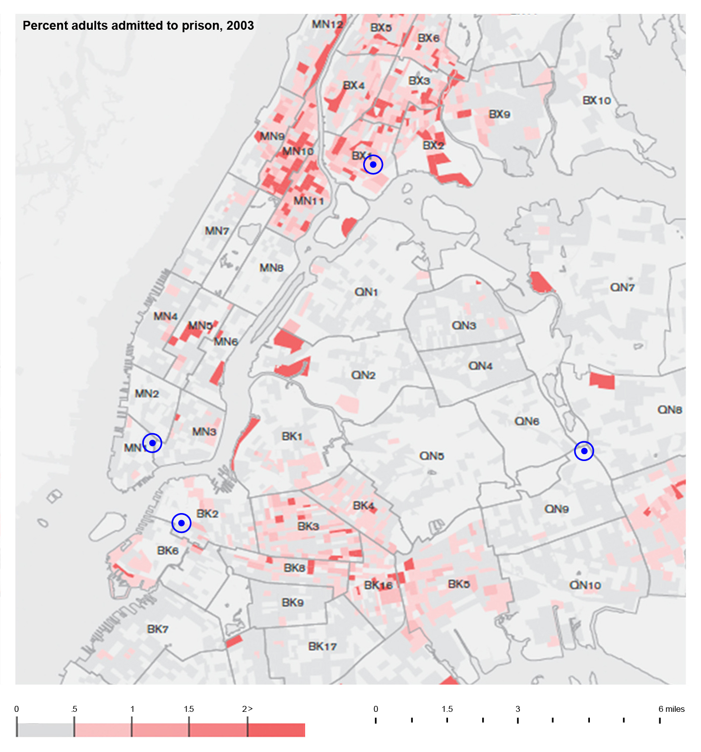 In 2003, $570,000 was allocated to incarcerate people that had previously resided in that one block. See Spatial Information Design Lab, The Pattern, 39. ↩