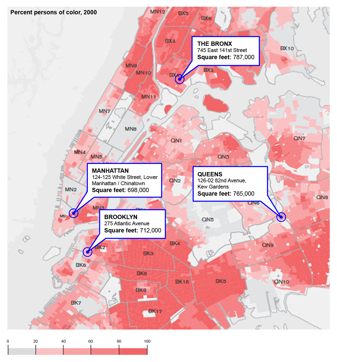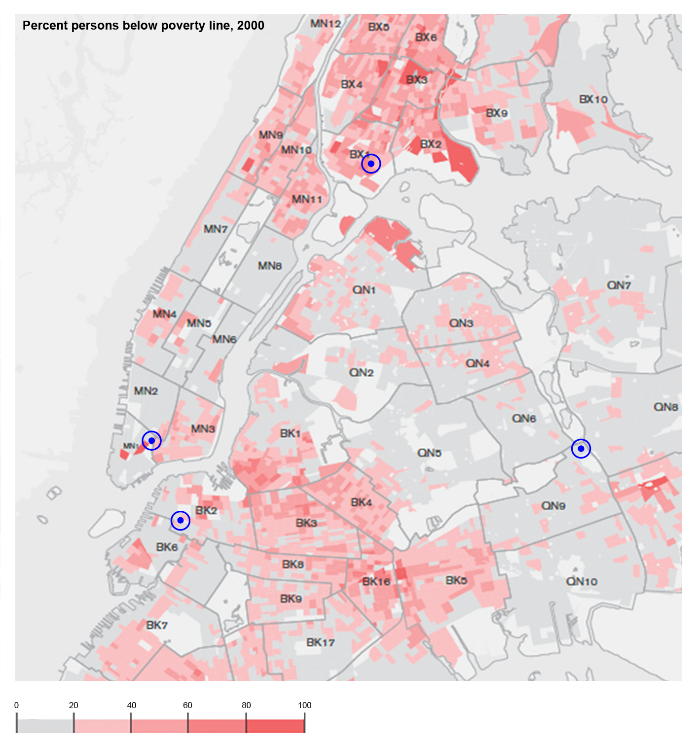 In Community District 1 in the South Bronx, 39.6 percent of residents live below the poverty line, 68 percent identify as Hispanic or Latinx, and 28 percent identify as Black. ↩