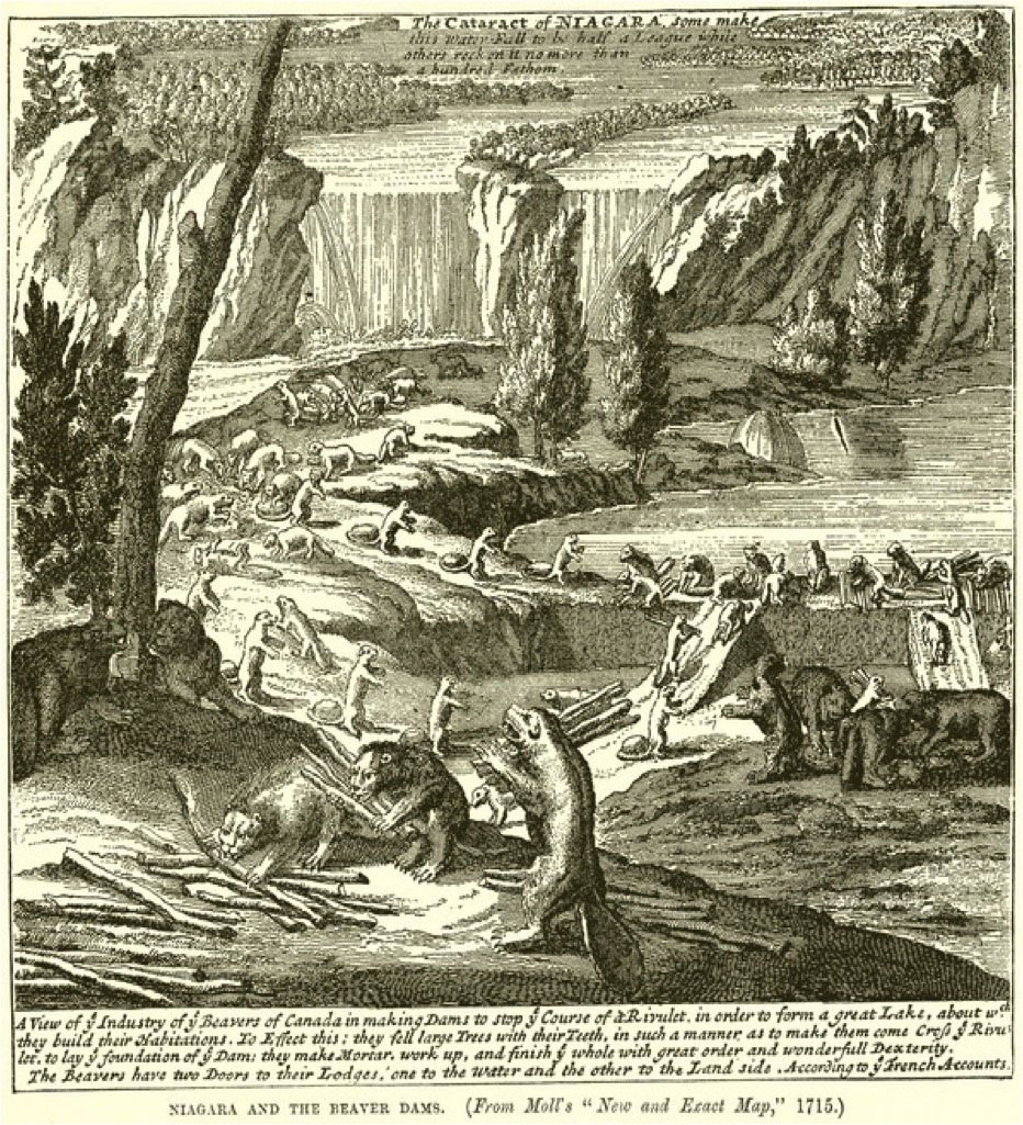Nouvelle découverte d’un très grand pays situé dans l’Amérique, entre le Nouveau Mexique, et la Mer glaciale, avec les cartes, & les figures nécessaires, & de plus l’histoire naturelle & morale, & les avantages, qu’on en peut tirer par l’établissement des colonies, Le tout dédié à Sa Majesté britannique Guillaume III. Par le r. p. Louis Hennepin, missionaire recollect & notaire apostolique, (Utrecht: G. Broedelet, 1697), with engraving; the plate on p. 44 is the first view of Niagara Falls. Elizabeth McKinsey, Niagara Falls: Icon of the American Sublime, (Cambridge, UK, and New York: Cambridge University Press, 1985). ↩