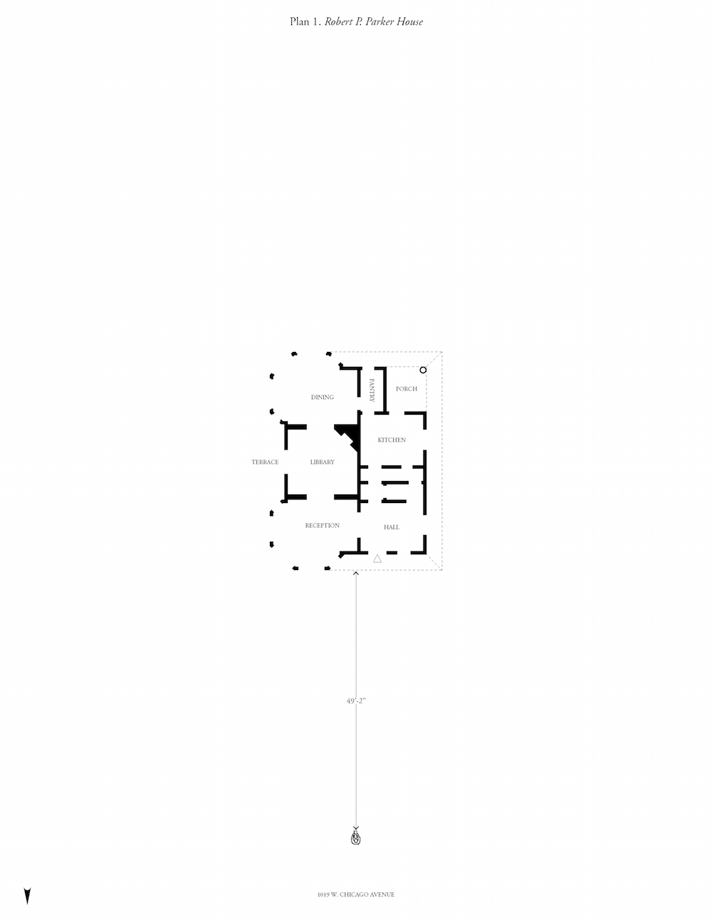 With the help of the Frank Lloyd Wright Foundation Archives at the Avery Architectural and Fine Arts Library at Columbia University, I have redrawn an addendum to the Trust’s map.7 For seventeen of the Oak Park homes Frank designed please see the following list of first floor plans that were made available by the archives. For the sake of consistency and comparison, each plan has been redrawn to a matching scale. In addition, repetitive graphic standards are used to indicate entry, roof line, program, wall thickness as well as each houses’ position relative to the sidewalk and your view. Feel free to couple this drawn record of Frank’s houses with what you see on your next walk through Oak Park. That said, be certain to begin your walk at Frank’s house. For fifteen dollars, no one will call the police.