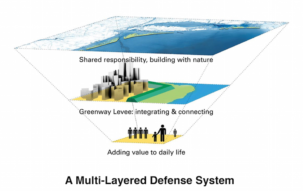 See WXY/West8’s proposal, in particular pages 9–12 and the discussion on Catastrophe Risk Engineering on pages 106–109: link. ↩