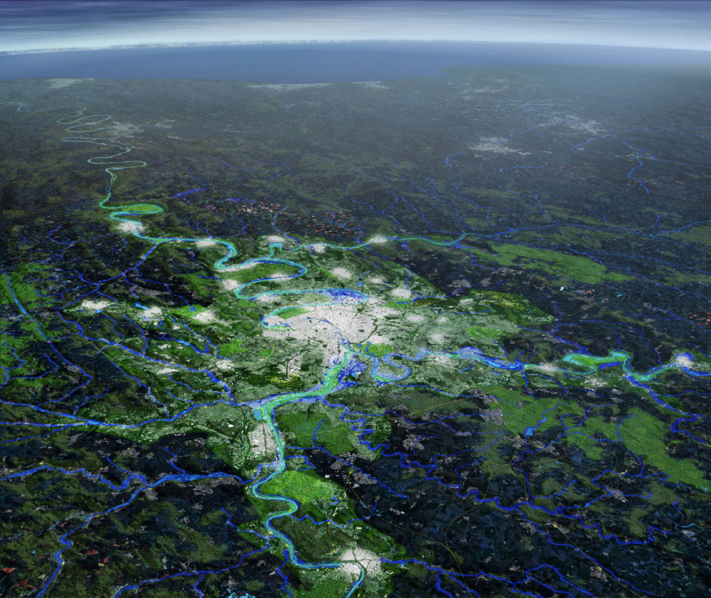 In such an eco-cybernetic space, data must be comprehensive, high-quality, and perpetual. Just like resilient governance, the data collected must be consistent across multiple geographies. According to an agenda of “administrative continuity,” it must extend a new span of knowledge from the individual “user” to the climactic reaches of extreme weather.19 Because such a span implies a monumental effort in collecting sufficient data, the RBD participants highlight a concern in the inevitable “gaps” of knowledge that will appear within—the processes, objects, measurements, and metrics that slip outside the datascape of ubiquitous computing and cybernetic sensory technologies. They suggest that a “data clearinghouse” can be opened up in parallel—an entity that aggregates multiple sets of data including community-based open source data, thus also able to identify and fill in gaps in the overall structure of information.20 For resilience to operate through nature-based solutions, data pertaining to it must be total just as much as it must also be “compelling.” It must translate itself not only to be accessible to a broader public, but to seduce it. Its seduction comes in part because it illuminates itself to the inhabitants of the urban in the real-time unfolding of nature, captured in brilliant colors on LCD screens and endless updates communicated through smartphone apps. Less the crisis of climate, what becomes the object of a total visibility in the space of resilient urbanism is a climate of crisis.
