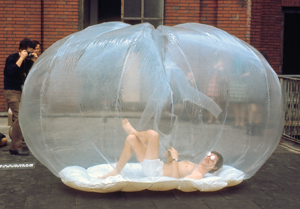 Designed well in advance of widespread concerns about climate change, the Suitaloon nonetheless gestures toward a question that will be reiterated implicitly in later such garments: how does apparel reflect our needs, desires, and expectations of the climates we inhabit? In the work of Archigram, these needs and desires retain an element of humorous utopianism: “If it wasn’t for my Suitaloon I would have to buy a house,” wrote designer Michael Webb.10
