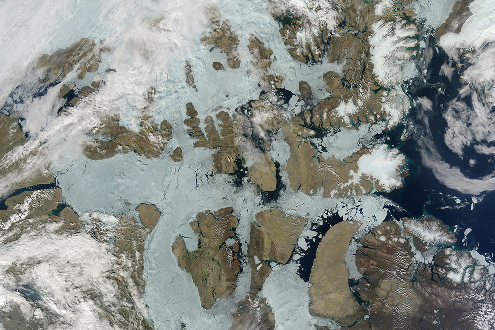 At the opposite scalar extreme is the equally prevalent, techno-scientific representation of the Earth’s surface garnered from the quasi-external, top-down vantage point of an orbiting satellite. Today, images taken from outer space reveal numerous signs of environmental distress, from the melting of glaciers and polar ice caps to desertification, air pollution, and more frequent and intense tropical storms.13 Such pictures are increasingly summoned to support the idea that we have entered an unprecedented epoch, the Anthropocene, wherein humans are interpreted as a newly geological force with the power to alter the planet itself, including its Earth systems. Like the famous photographs snapped aboard Apollo spacecraft in the 1960s and early 1970s that are their precursors, these contemporary satellite images, significantly, do not record national and other geopolitical boundaries, thus framing the planet as a natural body.14 It is clear, however, that they are the outcome and embodiment of specific geo-techno-politics, namely the decades-long, Cold War space race between the United States and Soviet Union that also gave rise to the (interrelated) development of cybernetics and Earth system science as an ever-more dominant frame for scientific analysis. The gaze of the satellite constructs a particular, highly technologized view of the world, not unlike the computer model through which infinite simulations have been run to assess current and future climate scenarios. Both must be considered relative to the broader visual regime of data through which climate change has largely been studied and communicated, and from which the scales of the global and planetary (which are not precisely the same) have become further solidified.15