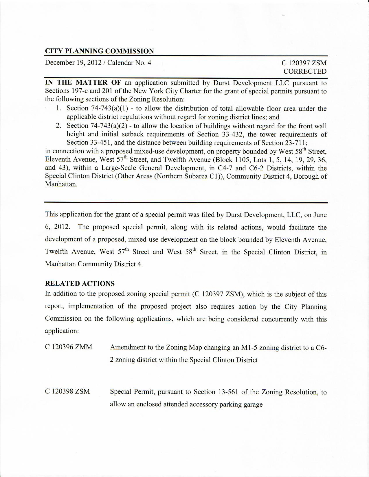 New York City Planning Commission, Durst Development LLC Application Report, 13. ↩