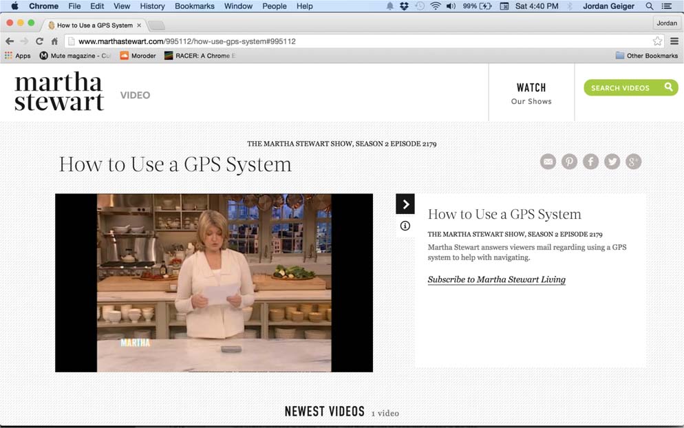 “How to Use a GPS System,” The Martha Stewart Show, season 2, episode 2179, 2006. ↩
