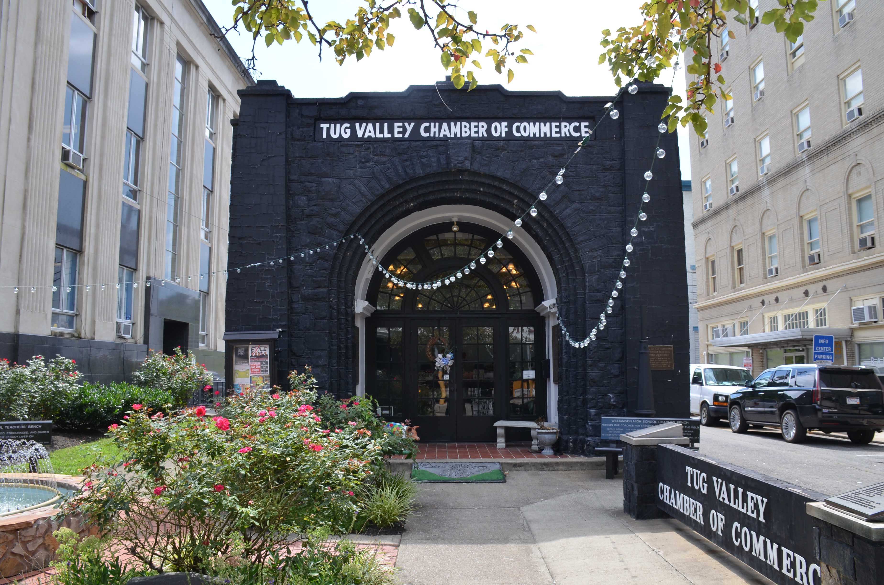 I next stop by a building that insists on thinking of coal at the scale of architecture—the so-called Coal House of Williamson, West Virginia. Like many cities and towns on the Tug Fork River, Williamson is surrounded by a prodigious flood wall courtesy of the Army Corps of Engineers; it’s the seat of Mingo County and hosts a substantial railyard on the southeast end of the city, a coal depot for the region’s mines. The Coal House was built in 1933 by the Norfolk & Western Railroad for publicity, a symbol of “the heart of the billion dollar coalfield,” as the town’s motto puts it. It is a work of novelty architecture, to be sure, crafted from heavily varnished coal blocks (the foundation is coal-black-painted stone). The interior burned in October 2010, but the coal managed not to, and it stands as a proud curiosity.