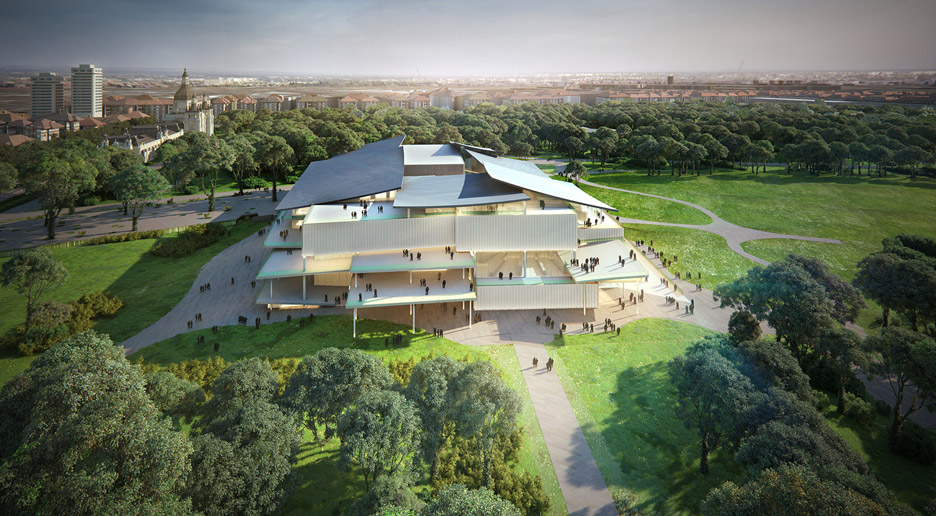 One of the first things that was clear regarding the national government’s plans for the museum quarter was that the designers of its buildings would be chosen through international architectural competitions, with some of the best-known practices of the world invited to participate. As a result, the four competitions for the project’s five new buildings produced a large number of images showing the designs of “starchitects” in the park.18 The images of these plans circulated in domestic and international media—iconic figures creating (pictures of) iconic buildings, and all for Budapest.