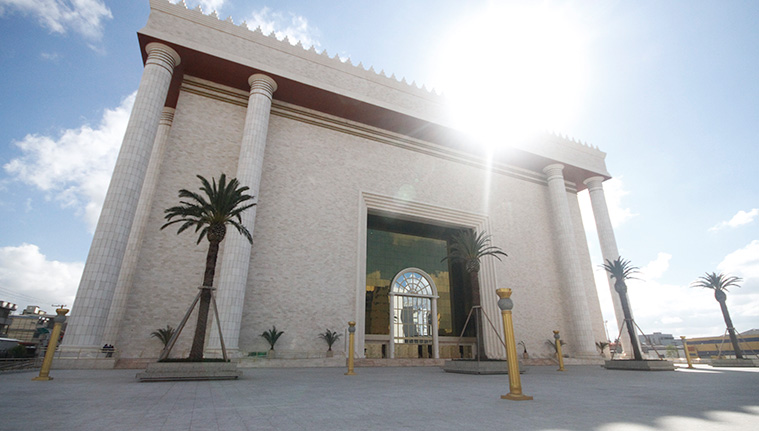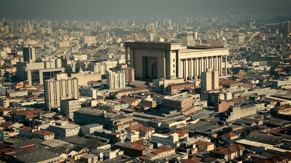 If Solomon’s first temple was, in fact, demolished by Nebuchadnezzar II after the siege of Jerusalem of 587 B.C., as it’s described in the Old Testament, it matters little for the film. The temple’s destructions and reconstructions began long ago and have yet to end. When the Jews returned from Babylonian captivity around 516 B.C., a second temple was erected on the Temple Mount, only to be looted later and its religious services stopped until its massive expansion by King Herod circa 20 B.C. Roman legions perpetrated yet another burning and shattering of Herod’s Temple in 70 A.D. Since then, Jews have prayed for its rebuilding—something that will take place, as stated by Jewish theology, with the advent of the Messiah.2 Though otherworldly visions had been drawn for this coming of the third Temple, somehow the Pentecostal Universal Church of the Kingdom of God (UCKG) has won the race, recently completing a 55-meter-high version of dubious taste in São Paulo, Brazil.