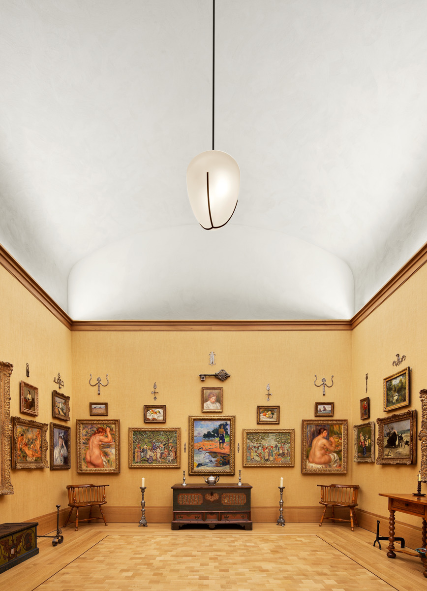 To support this way of seeing, Barnes and his architect Paul Philippe Cret conceived a space of inquiry, where the works on the wall, in the three-dimensional space of the room and by extension, the four-dimensional temporal sequence of the entire building, formed an orchestrated display of aesthetic evidence.4 Within Cret’s beautifully proportioned galleries, which referenced domestic scale and plan arrangements while substantially enlarging them, Barnes’s installation was a kind of memory theater, a free-form rebus of structured meanings. The symmetrical pairings and idiosyncratic groupings of paintings and objects were meant to induce observations, associations, and intuitions that could be played with and eventually deciphered in ways that spoke not simply to the individual canvas or object but the vastly greater sum of aesthetic, scientific, and even moral intentions that Barnes was convinced were central to the entire enterprise of “modern” art.