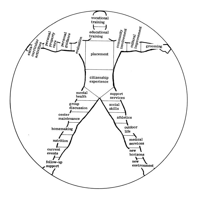 “Manpower”—eventually replaced by the gender-neutral “human resources”—became a focus of executive action under President Dwight D. Eisenhower, who considered it a tool for national economic planning.19 Formalized under the Department of Labor with the passage of the Manpower Development and Training Act (MDTA) in 1962, it coincided with the institution of new social welfare programs under John F. Kennedy. During the 1960s, the federal government pursued large scale initiatives to increase the employment of Americans across the country as cities underwent urban renewal. “Idleness” and “blight” were seen as inextricable conditions of poverty, which could be solved by jobs and job training.20 One such initiative was the Job Corps, established in 1964 as part of Lyndon Johnson’s “Great Society,” specifically employed as arsenal in the “War on Poverty.”21 From 1964 to 1968, more than one hundred Job Corps Centers were coordinated through the Office of Economic Opportunity.22 Secretary Wirtz had actively sought jurisdiction for the initiative within the Department of Labor and pursued a corresponding program, the Neighborhood Youth Corps, as his own personal project.23 Both set out to employ the underemployed youth of the nation, particularly those who came from poor communities and “broken homes.”24