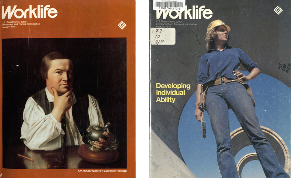Following the passage of the Comprehensive Employment and Training Act of 1973 (CETA), the Manpower Administration was rebranded as the Employment and Training Administration in 1975, a move that was followed by the conversion of Manpower to Worklife. The inaugural issue of the new edition in January 1976 recommitted to the mission set forth by Wirtz in 1969: “to advance national efforts to equip every American for meaningful employment” but in terms that would keep pace with a “changing economy and society.”53 In casting a new era in which to pursue many of the same efforts brought by the Manpower years, including removing its titular “reference to sex,” Worklife attempted to find neutral political ground in “meaningful employment” and in a culture of work that extended back to the American Revolution (this was a bicentennial edition, after all).