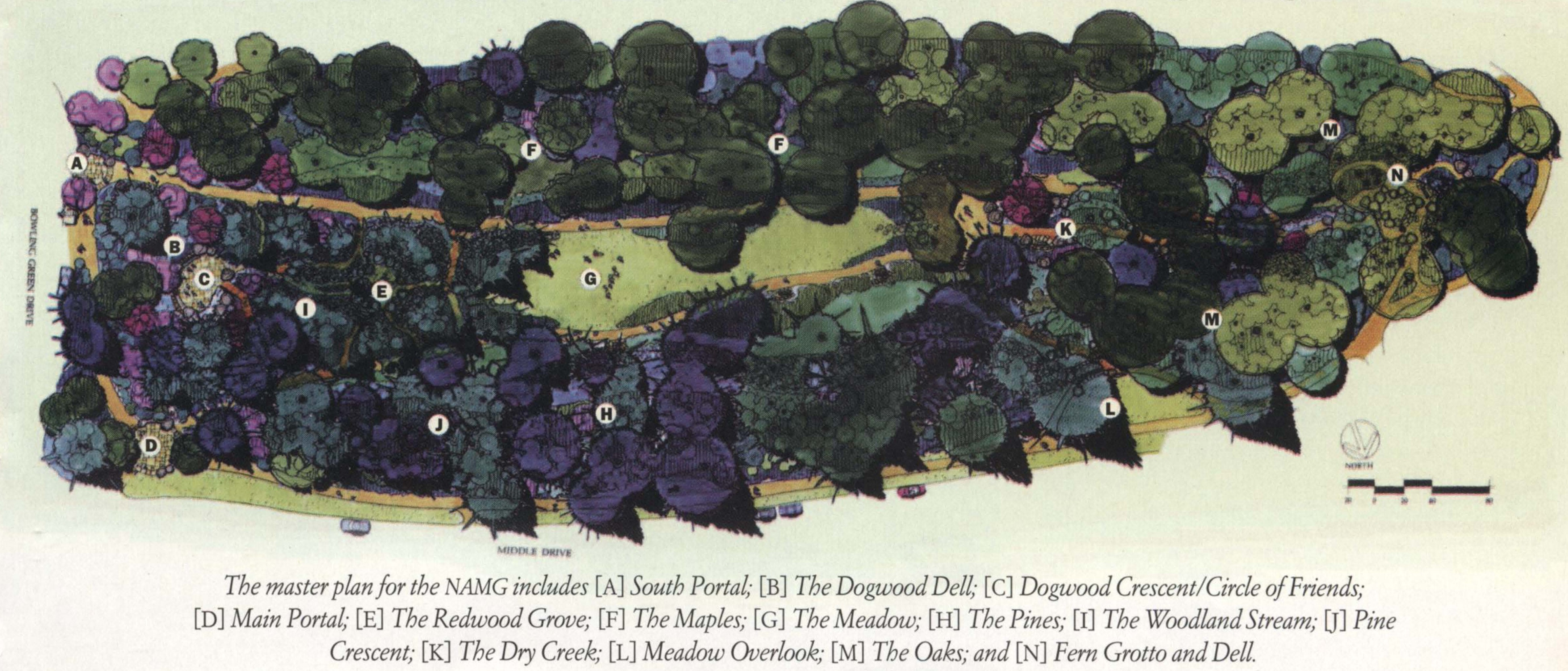 The Grove was built at and for a specific scale of use. Because it was conceived at the height of the early US AIDS epidemic, it was intended primarily as a site of individual and collective grieving; the intimate scale of the space is designed to facilitate this grieving process. Upon receiving its national designation in 1996—“H.R. 3193: To recognize the significance of the AIDS Memorial Grove, located in Golden Gate Park in San Francisco, California, and to direct the Secretary of the Interior to designate the AIDS Memorial Grove as a national memorial”—the Grove was thrust into an entirely different scale of use.8 As Gamson elaborates, “the functions of semiprivate grieving, healing, and remembrance came into competition with the function of public storytelling, oriented towards a national audience in both the present and the future.”9 Though not mutually exclusive, personal grieving and national memorializing each have their own unique spatial requirements.