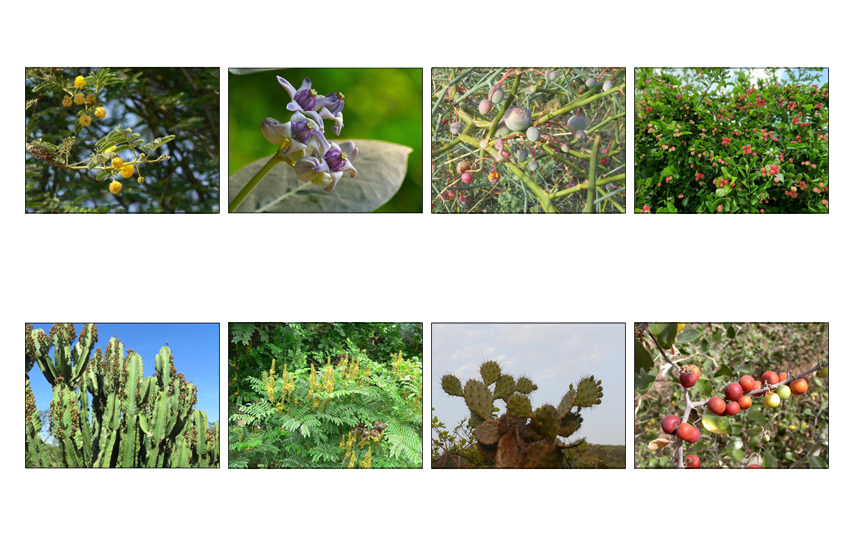 Relentless attention to local vegetation and climatic conditions ensured that the Hedge thrived. In places where the land was incapable of supporting the Hedge, soil was imported. The use of a vegetated barrier perhaps served to visibly soften the brutality of the Customs Line in the public consciousness, but there was nothing benign about its design. Workers whose names have long been forgotten collected seeds from thorny indigenous plants that would grow fast and strong, selected for their ability to inflict maximum damage on those who tried to sneak across the barrier.32 The Hedge consisted of plant species like: babool (Acacia nilotica), Indian plum (Ziziphus mauritiana), karonda (Carissa carandas), nagphani (Opuntia, three species), thuer (Euphorbia, several species), thorny creeper (Guilandina bonduc), karira (Capparis decidua), and madar (Calotropis gigantea).33 Ridges were raised and trenches were dug to ensure both adequate drainage and rainwater collection.34 The resilience of live plants—or perhaps the maintenance that supported them—helped the Hedge endure environmental degradation.35 According to a commissioner of the Customs Line, the Hedge was “in its most perfect form… ten to fourteen feet in height, and six to twelve feet thick, composed of closely clipped thorny trees and shrubs.”36 It truly was an ecological marvel—though one designed to oppress.