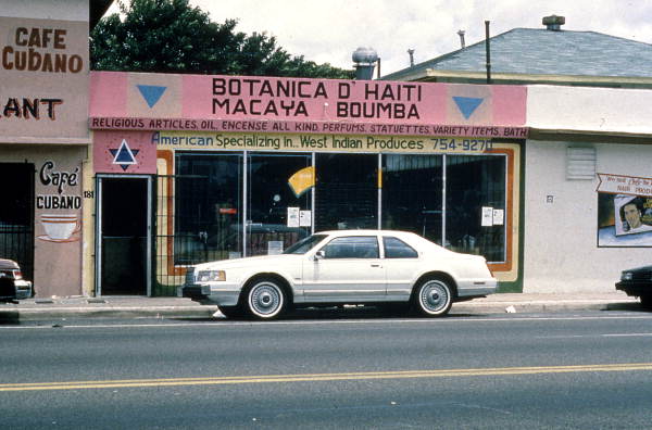 The botánica transcends the importance of vernacular architecture because it houses the spirited objects of a Vodouyizan’s ritual; it becomes a site of conjuring, the architecture of a possession, connected to the botánicas that appear throughout islands like Haiti, Cuba, and Puerto Rico. Botánicas were especially helpful for Haiti’s post-earthquake economy. Miami’s Little Haiti holds the largest concentration of Haitian businesses in the diaspora worldwide. The cultural necessity for specific products from Haiti helps Haitian business owners in the US, Canada, or France establish a network with other small businesses or farmers in Haiti and potentially leverage their businesses simultaneously. The US and Haitian governments also play a role in facilitating these transnational relationships by allowing duty-free and tax-exemption policies in certain sectors of Haiti’s exports, such as agriculture.32