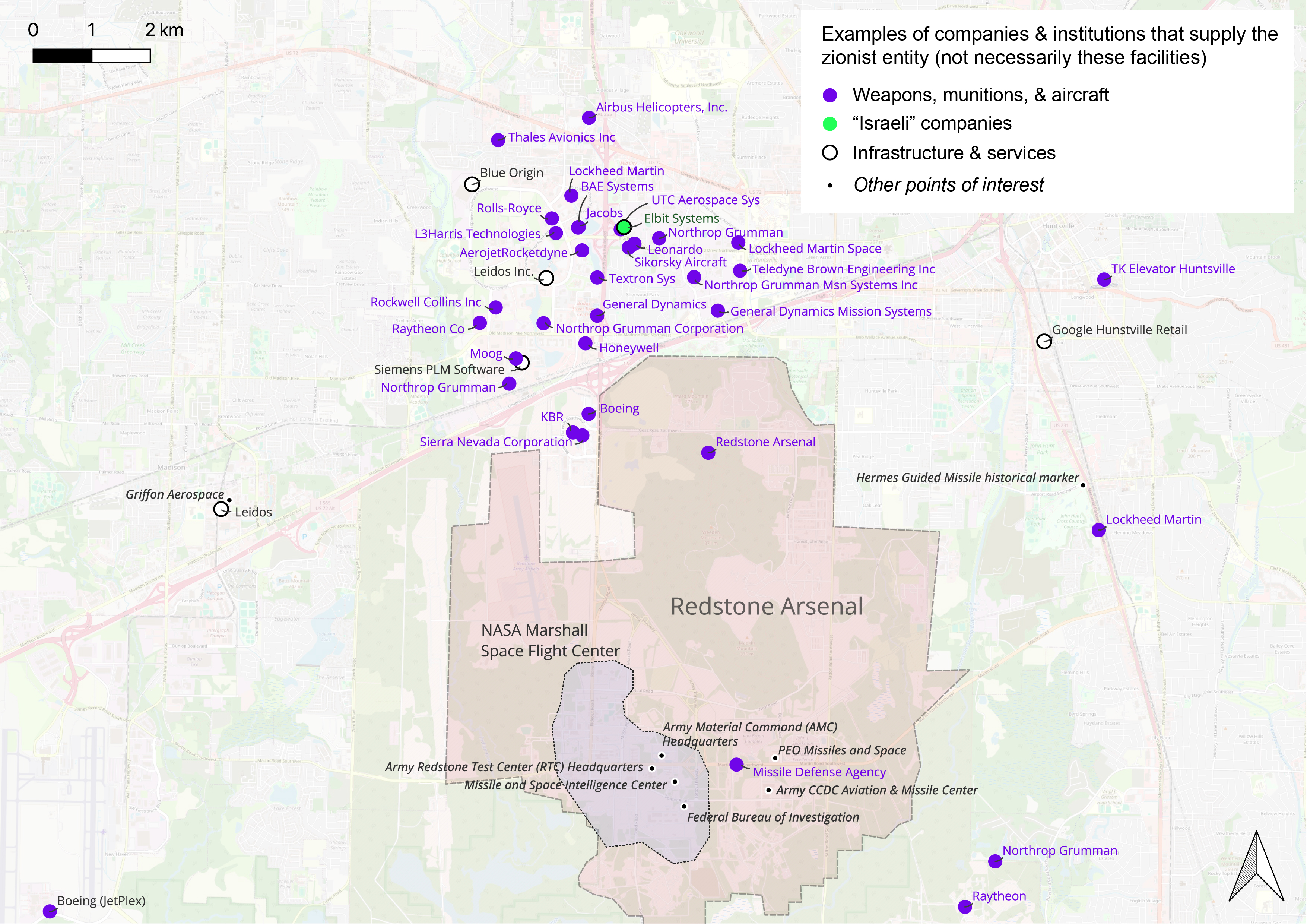 In 2024, PSI released a database and report on over 50 companies we identified to both be active in the space sector and supply the zionist entity with arms, missiles, ammunition, bombs, aircraft, chemical weapons, cyberwarfare technology, fossil-fuel infrastructure, and more. The report exposed $39 billion in NASA expenditures to half of these companies, amounting to 50.2 percent of NASA spending. The contracts with NASA show a mix of dual-use technology supply (e.g., missile/rocket development; computing hardware for Mars rovers), and basic research often in partnership with the Department of Defense on building more “sustainable” (faster) aircraft, testing the limits of the “civilian” half of the term dual-use. In one case, the Boeing contract on file shares an address with the facility manufacturing JDAM missile-guidance systems for the 2,000-pound bombs that the zionist entity has used numerous times to kill Palestinians in Gaza since October 2023.