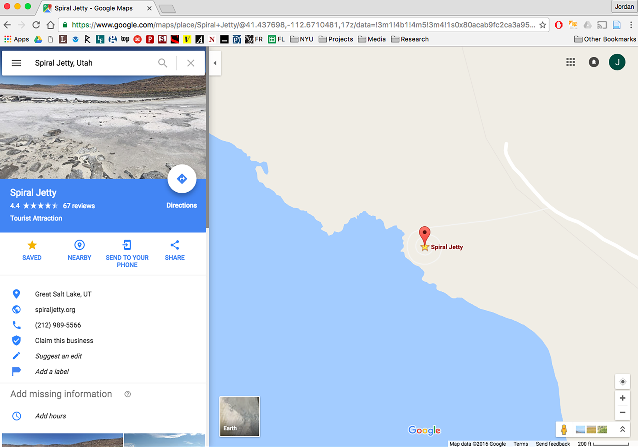 Google user Alan Rencher’s biting, two-star review of Spiral Jetty suggests, “Look at the aerial picture and save yourself the boring, bumpy ride out to the middle of nowhere to see rocks places [sic] in a circular pattern. Not sure this even qualifies as art.”15 Rencher insists that the work, such as he thinks it is, can be identified and experienced simply through the Google interface. Note that Rencher is not suggesting you ignore the Jetty but that you experience the work through satellite imagery—that looking at it through the digital mediums offered by Google is at least as valid as driving out and seeing it in person from the shore of the Great Salt Lake. Knowing that both methods of viewing the project allow for only an incomplete and abstract understanding, I’d like to think Smithson might just agree with him.