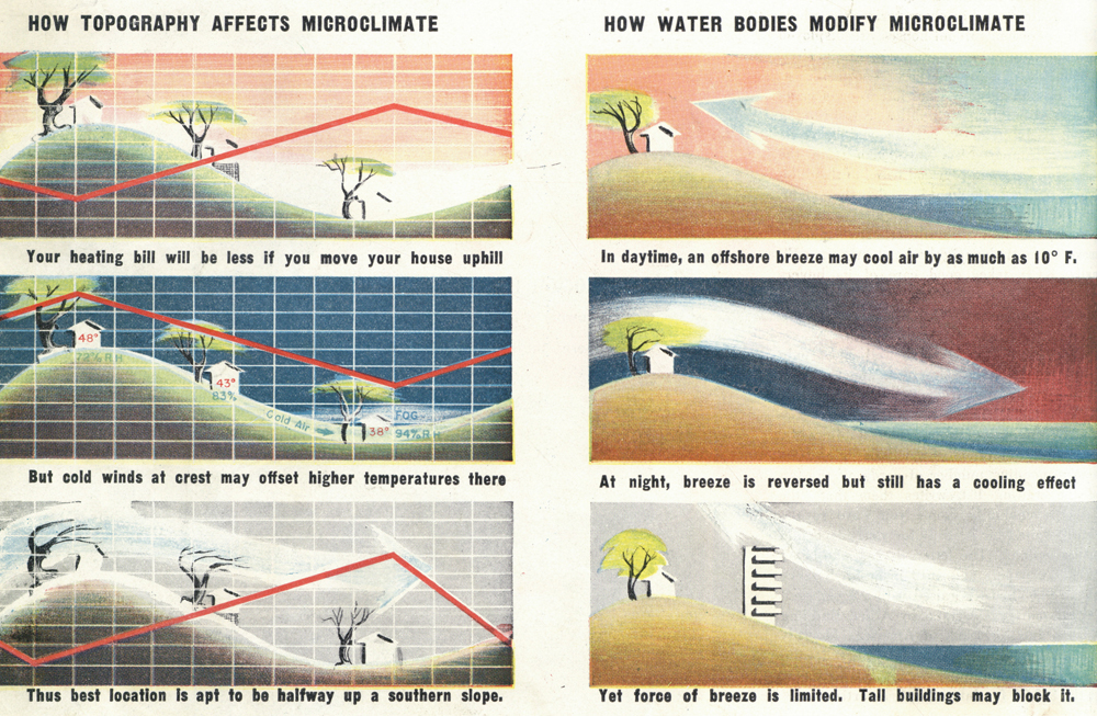 James Marston Fitch, “Microclimatology,” in Architectural Forum, vol. 36, no. 2 (February 1947): 18; see also G. Manley, “Microclimatology: Local Variations of Climate Likely to Affect the Design and Siting of Buildings,” in RIBA Journal (May 1949): 317–323; W. E. Graham, “The Influence of Micro-climate on Planning” in Planning Outlook (March 1949): 40–52; Helmut Landsberg, “Microclimatology,” in Architectural Forum, vol. 36, no. 2 (March 1947): 114–120. ↩