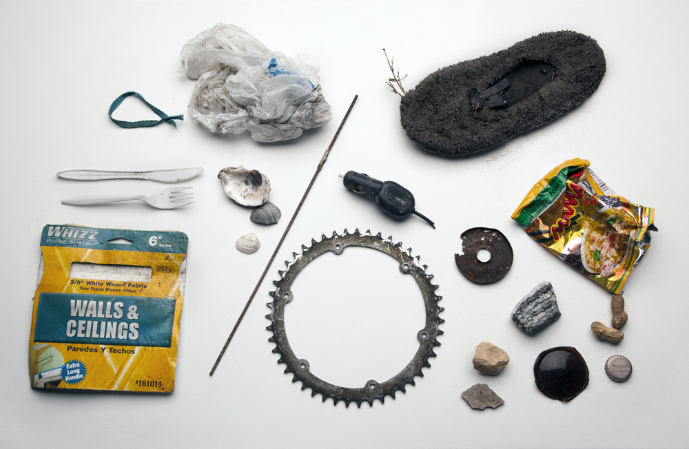 A People’s Archive of Sinking and Melting, initiated in 2011 by the California-based artist Amy Balkin, is, as she describes it, “a collection of materials contributed by people living in places that may disappear because of the combined physical, political, and economic impacts of climate change … Together … they form an archive of what will have been.”24 The artifacts thus amassed—of modest scale and carrying oblique reference to both their sites and acts of collection (the artist is clear that anything that “happens to be there” is welcome)—include a desiccated mango pit gathered along the shoreline of a small fishing village in Senegal, a pebble from the Ninth Ward of New Orleans, and a rusted nautical hook from Palmer Station on Anvers Island in Antarctica. This participatory archive is rooted in mundane objects that together bear situated, poly-vocal witness to real and projected events. While reminiscent of an eighteenth-century Wunderkammer in terms of its eclecticism, this bevy of curiosities is not meant to consolidate one vision or experience of the world, but, on the contrary, to serve as “community-gathered evidence” or “a public record,” in the artist’s words.25 It is counter-official documentation that she and the archive’s donors are building, both political and elegiac in its tone.