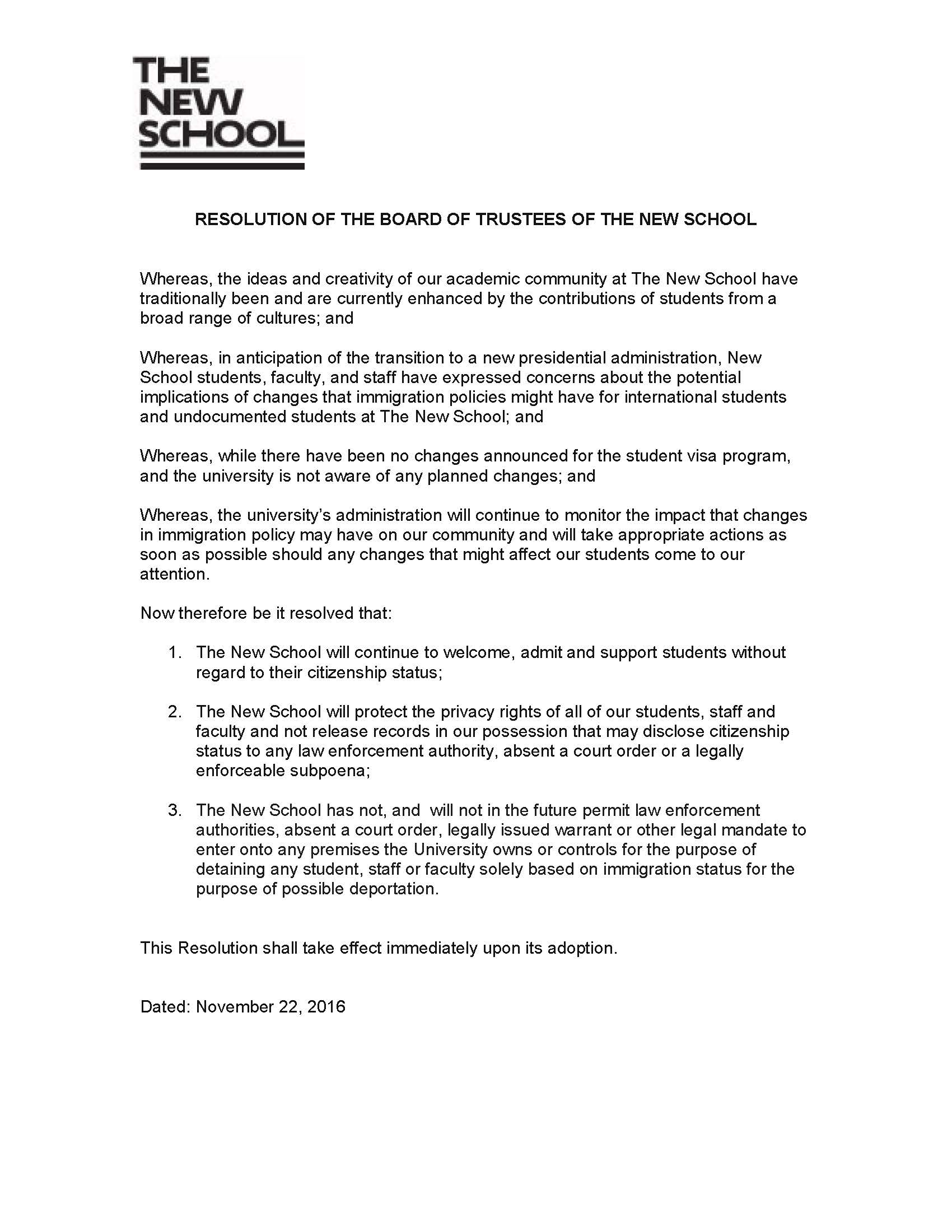 See “Resolution of the Board of Trustees of The New School,” November 22, 2016, link. ↩