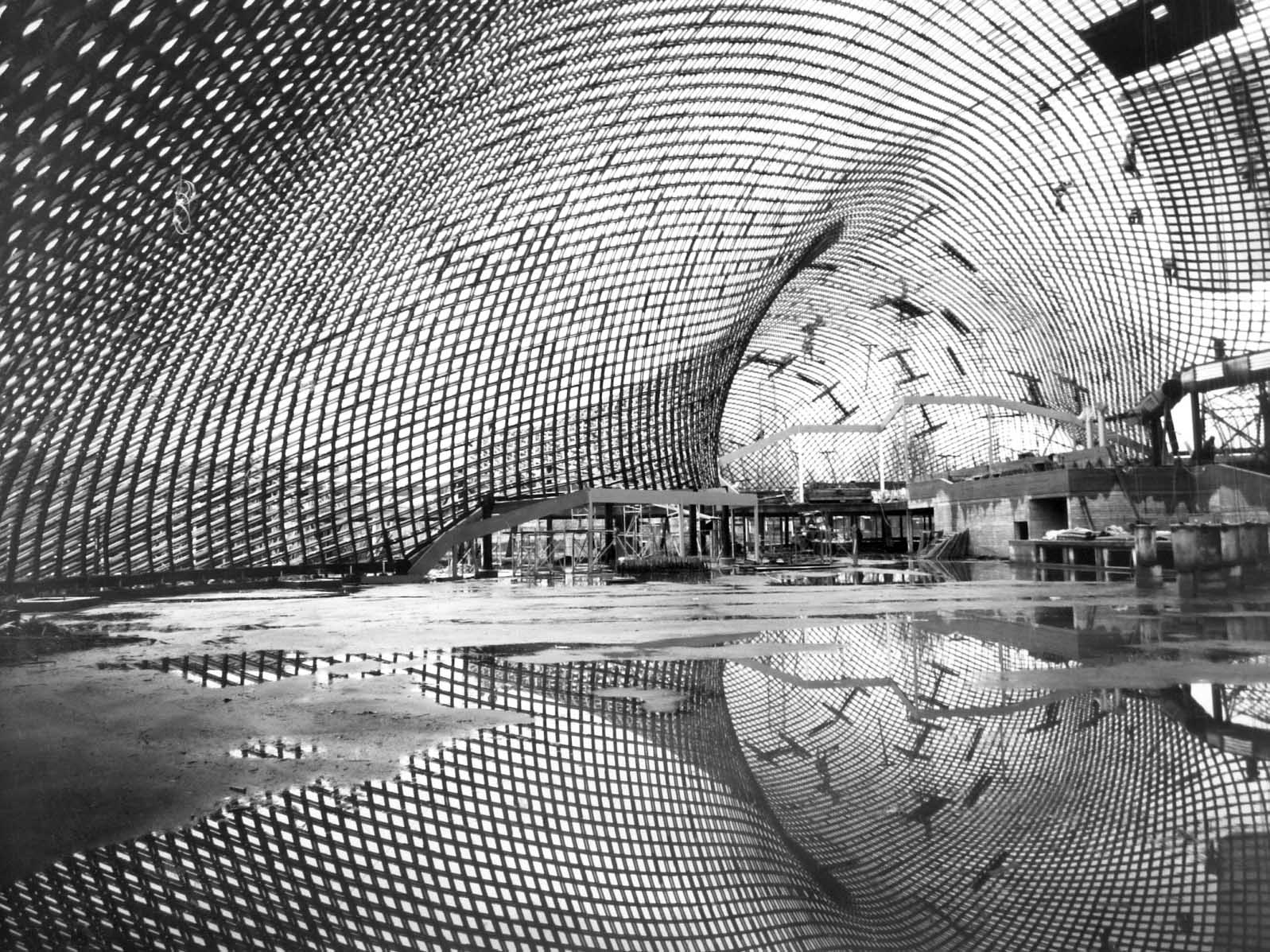 Frei Otto’s roof for the Multihalle in Mannheim, Germany, 1974. © Atelier Frei Otto Warmbronn.