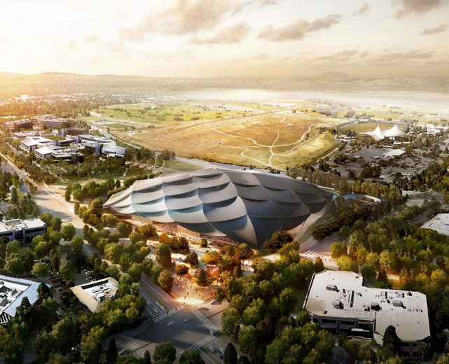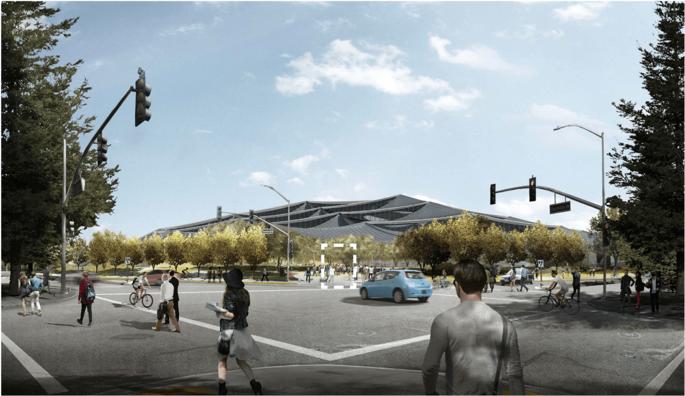 BIG and Heatherwick Studio's 2017 proposal for the Googleplex rendered as if viewed through Google Street View. © Google/BIG/Heatherwick Studio.