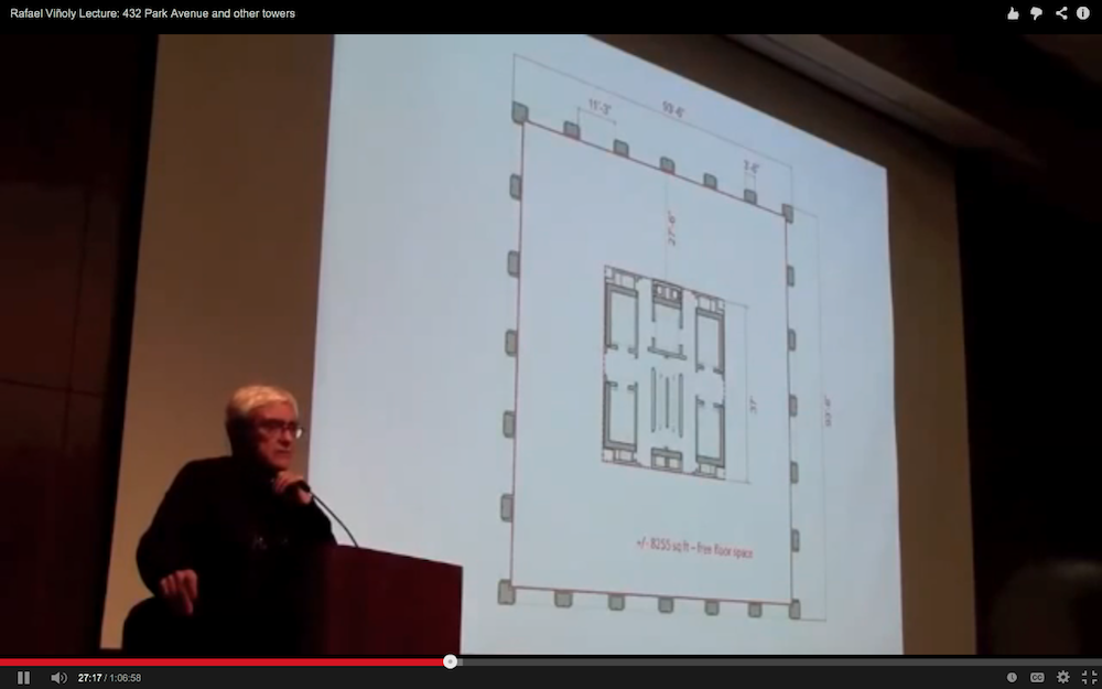 “It’s a structural solution that is totally connected to the market. The odds that people paying this kind of money are going to like the model apartment are about one in a thousand. With this design, there is no structure in the body of the plan, only in the perimeter and the core. That gives owners the flexibility to build their own apartments, without interrupting structure or services” Viñoly quoted in Bernstein, “Newsmaker: Rafael Viñoly.” ↩
