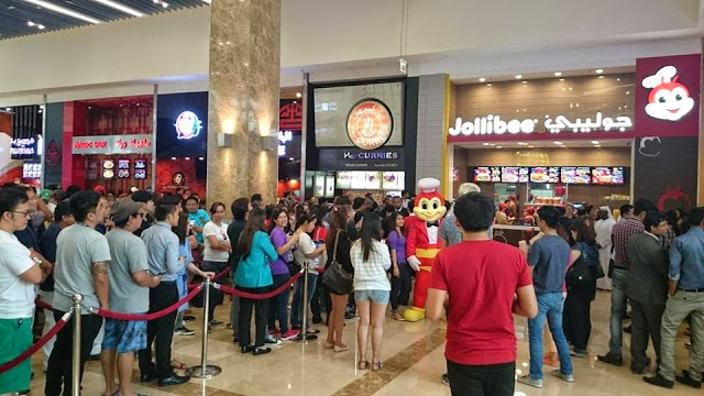 One’s experience at a Vietnamese Jollibee, where most patrons are Vietnamese (in Vietnam the Philippine diaspora hovers around only five thousand people), will be very different from one’s experience at a Jollibee in the UAE, where the vast majority of Jollibee customers are Filipino. In the Dubai Mall (the second largest mall in the world by total area), the Jollibee is just one of a number of fast food options that collectively form the Food Court’s spectrum of self-consciously and comically cosmopolitan options—London Fish & Chips, Fujiyama’s Yakisoba, Man’oushe Street, and Magic Wok. And while London’s Fish & Chips does not aim to cater to British ex-pats, nor does Fujiyama’s Yakisoba aim to cater to Japanese tourists, it was for a taste of home that unprecedented crowds gathered for Jollibee Dubai’s grand opening. Filipinos waited up to five hours to be served a Chicken Joy meal for 7 UAE (~ US $2). While there are many Filipino restaurants in Dubai, the Jollibee is the only Filipino restaurant in the Dubai Mall. Most other Filipino restaurants concentrate around the Al Satwa neighborhood, Dubai’s Filipino-town. In Al Satwa, Filipinos are able to buy Filipino ingredients in local markets and speak Tagalog or Ilocano on the street. It is, in other words, more or less discernable as an “anthropological place,” in Augé’s parlance. Paradoxically, however, it is a place that is in many ways more distinct from the OFWs’ experience of “home” than the Dubai Mall.