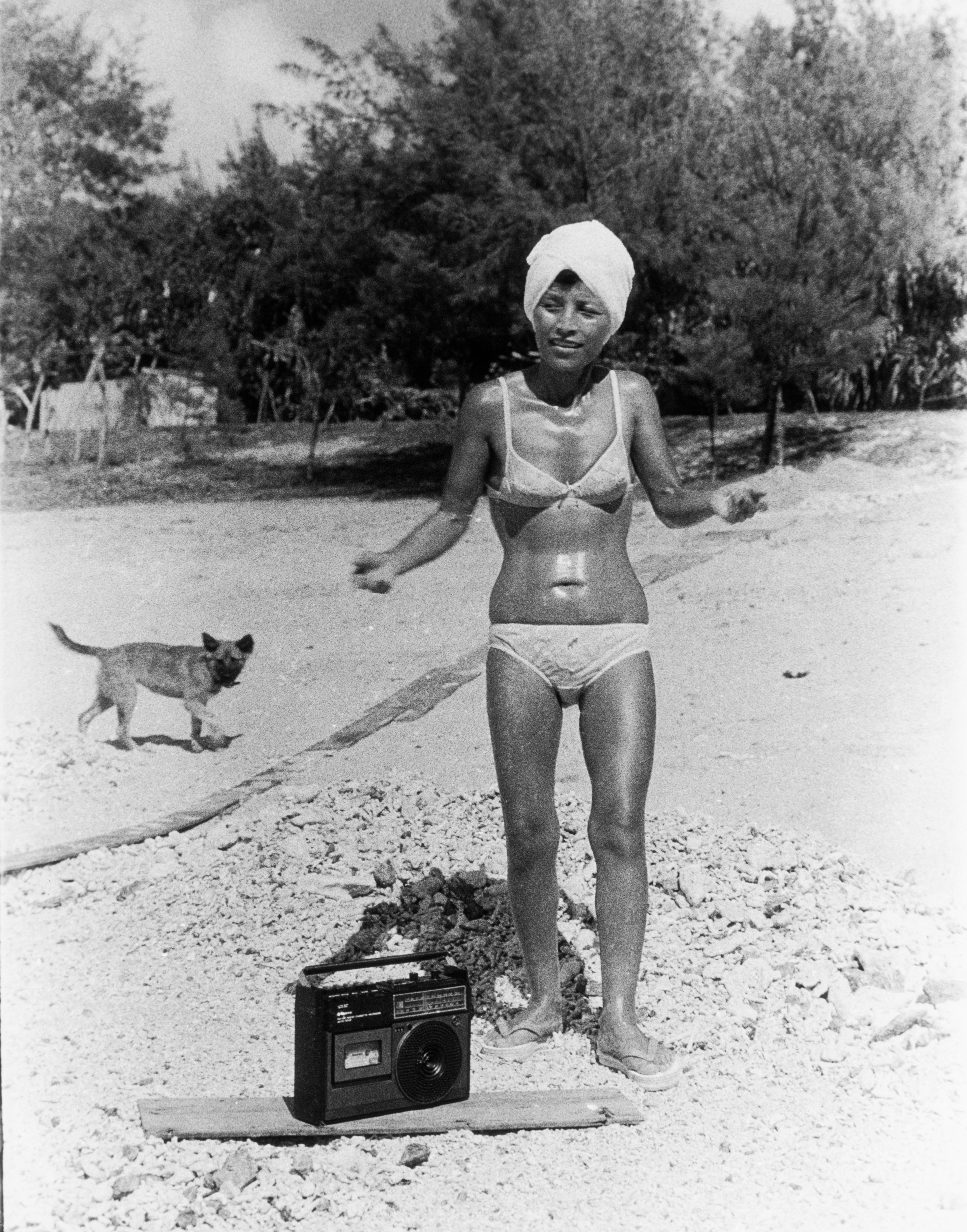 After being introduced to the women of Okinawa and the domestic spaces they inhabit, Ishikawa takes the viewer to the beach. Here, the beach remains an environment for pleasure and leisure—but nonetheless provides an alternative to tourist imagery. Instead, the portrait of Mao’s friend standing next to a stereo depicts the beach as another site of shared intimacy.