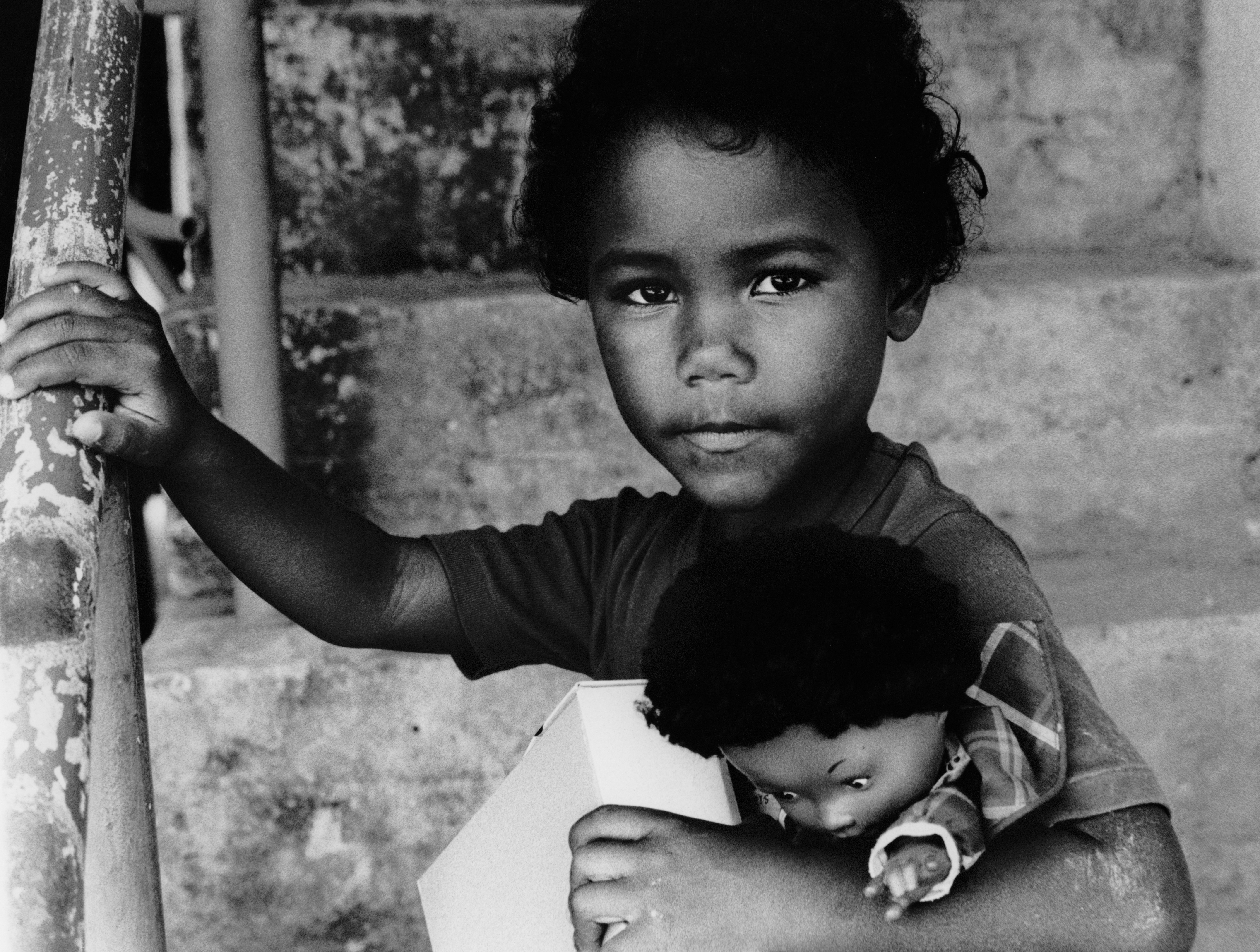 The impacts of US occupation are well documented, but perhaps most poignantly so by Mao Ishikawa. In 1975, the Japanese photographer set out to document the American presence on the island. Unable to visit military bases, Ishikawa began working at a bar in Koza City that catered to Black soldiers.1 Discrimination within military ranks created segregated social spaces on the island, and the bars in Koza City became bunkers for taboo relationships between Okinawan women and Black Americans. The photographer describes Okinawa as a “no man’s land,” caught between its Indigenous (Ryūkyūan) roots, the Japanese government, and the United States. With Red Flower (New York: Session Press, 2011), Ishikawa sought to destabilize a narrative she encountered on the island that women who were in relationships with American soldiers were sex workers or traitors to their own people. Instead, she tells a love story against a backdrop of imperial actors. The opening text of Red Flower reads, “What’s wrong with loving a black man! What’s wrong with working at a black bar! What’s wrong with celebrating our freedom! What’s wrong with enjoying sex!”2