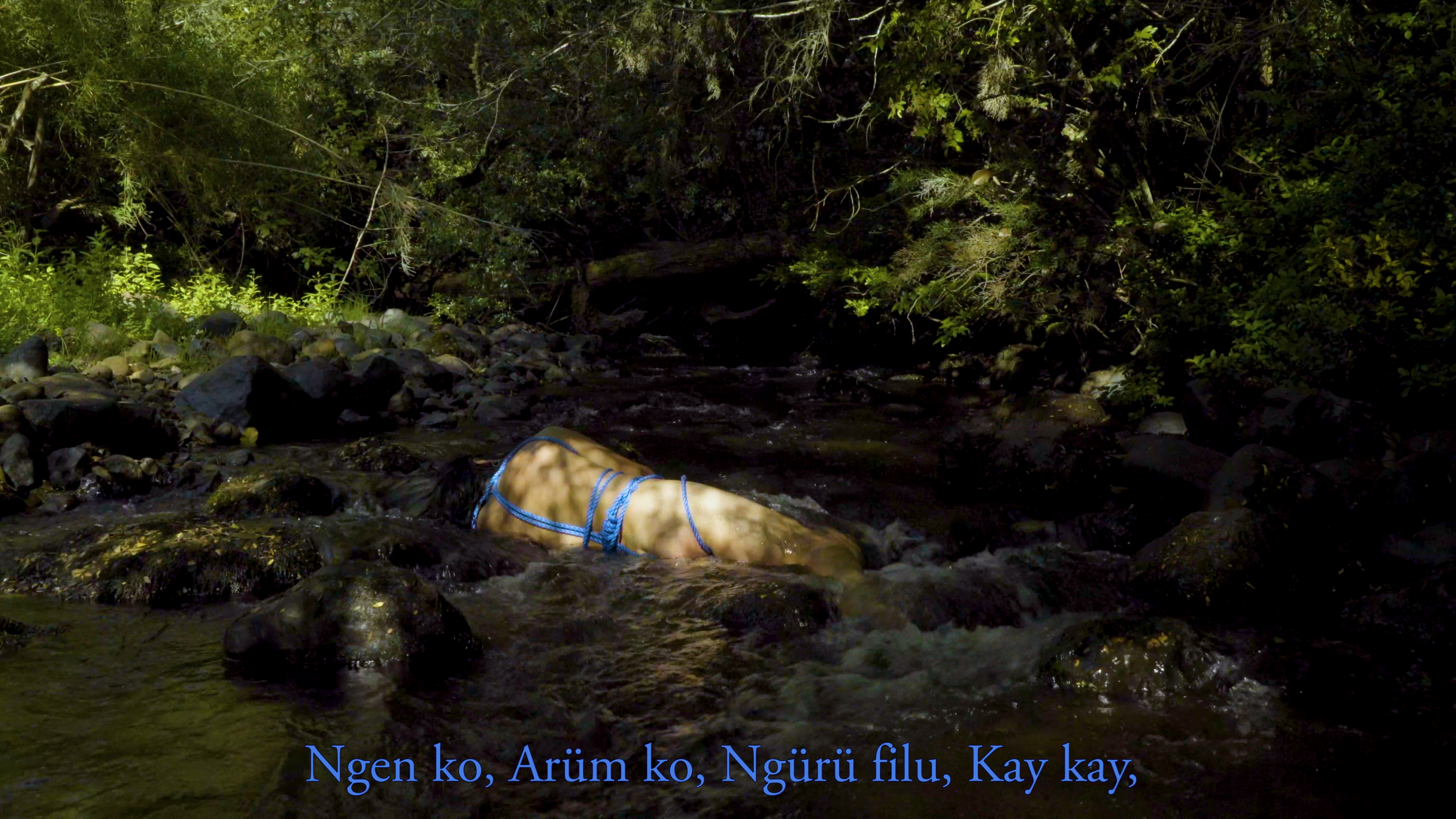 Sebastián Calfuqueo, Kowkülen [Liquid Being], 2020. HD video, color, sound, 3 min. Courtesy of the artist; photograph by Cons Gallardo, Raúl Moncada.