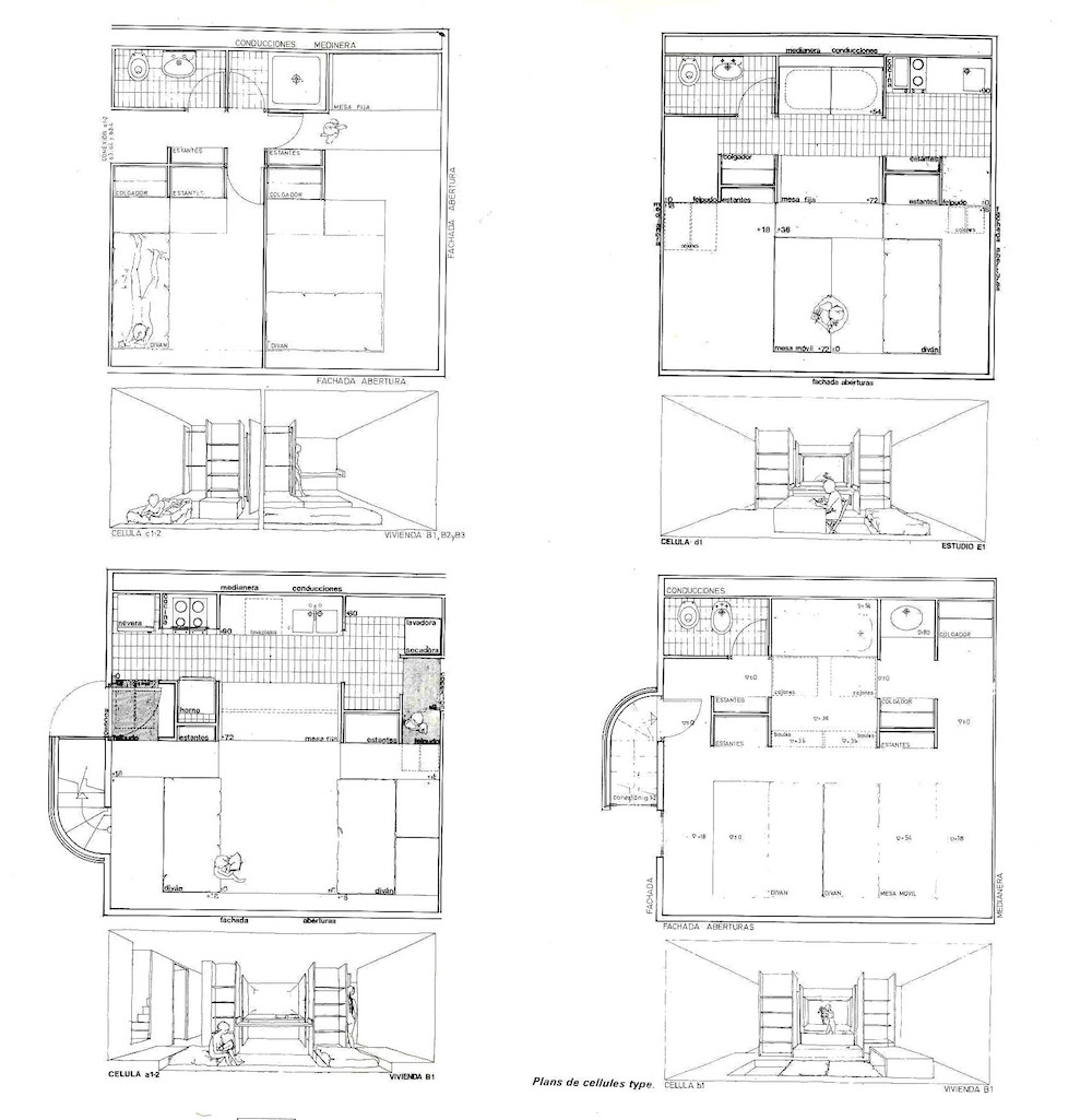 The difference between early projects from Taller de Arquitectura and those that served as the studio’s references—including the work of Archigram, Habitat 67, and theoretical projects like Friedman’s Spatial City—is that in Taller’s built projects there was no infrastructure into which prefabricated units were placed.4 5 6 Instead, their projects were built under extremely low-tech conditions, a fact that distinguishes them from Metabolist and other more technologically enthusiastic approaches.7 That fact, among other reasons, led the idea of the system to prevail over how it was materialized.