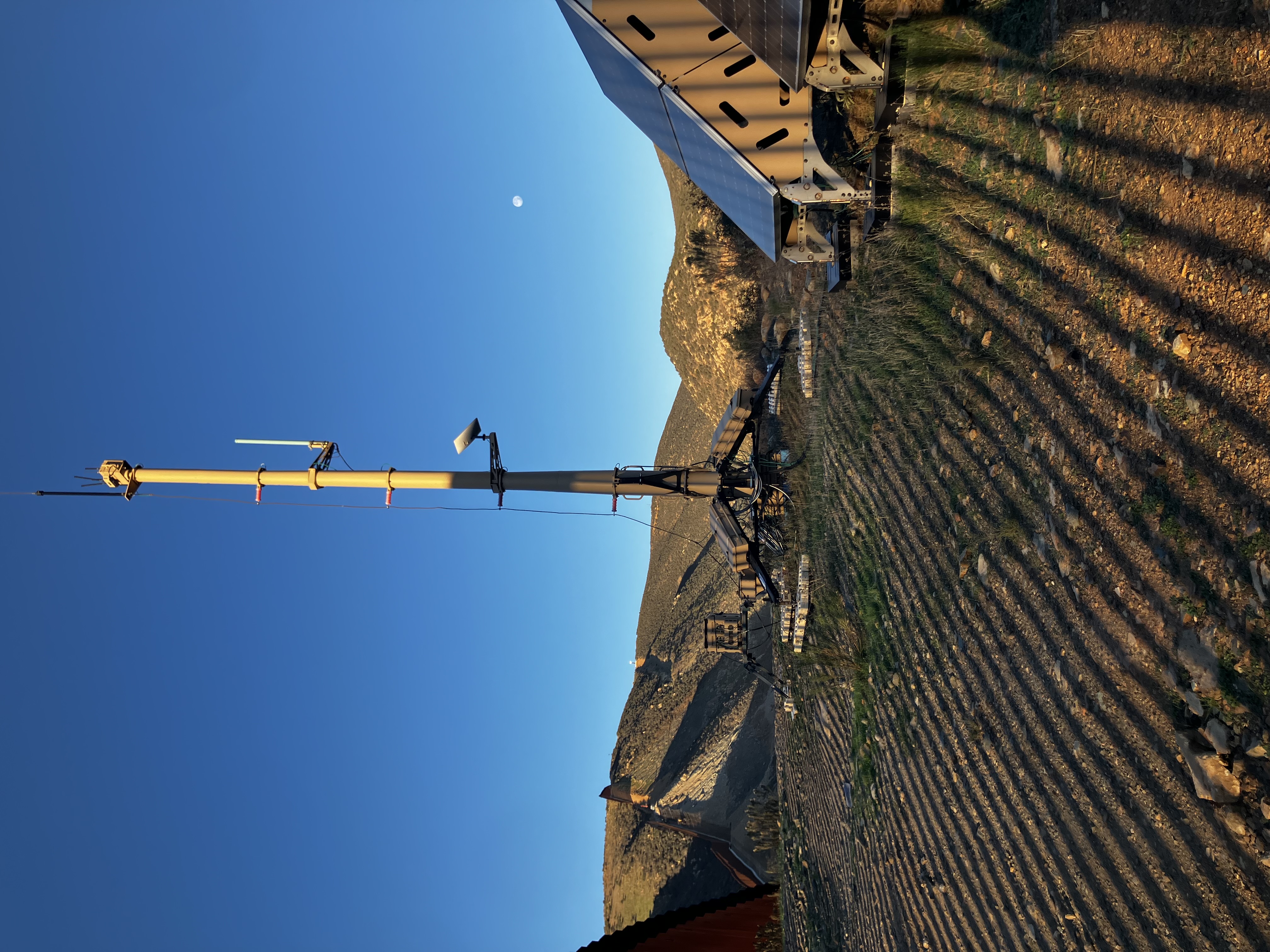 Back on the mountain, the sun fills the sky, illuminating our faces, illuminating the machinery. About 100 yards from the mobile tower was an Anduril-branded AST, a unit in their “Sentry” system for “autonomous awareness.”54 It was overwhelming in scale. The murky beige components hardly obscure the harsh transformer parts against the arid hills.