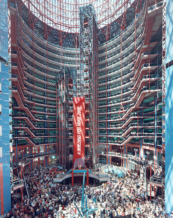 “The locals are calling it the spaceship and the Star Wars building. When it was dedicated a few weeks ago, the atrium was draped with a huge banner reading ‘A Building for Year 2000,’ and since then the crowds have come to gawk as they have not at any new building in downtown Chicago in years.”